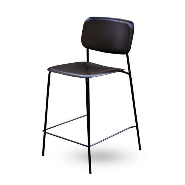 כיסא בר בעיצוב מודרני ונקי עם מושב ומשענת מעץ בגימור חלק, ורגלי מתכת דקות המעניקות מראה אלגנטי וקליל. נוח, יציב ומתאים לחללים מעוצבים כמו אי מטבח, פינת אוכל גבוהה או בר ביתי.