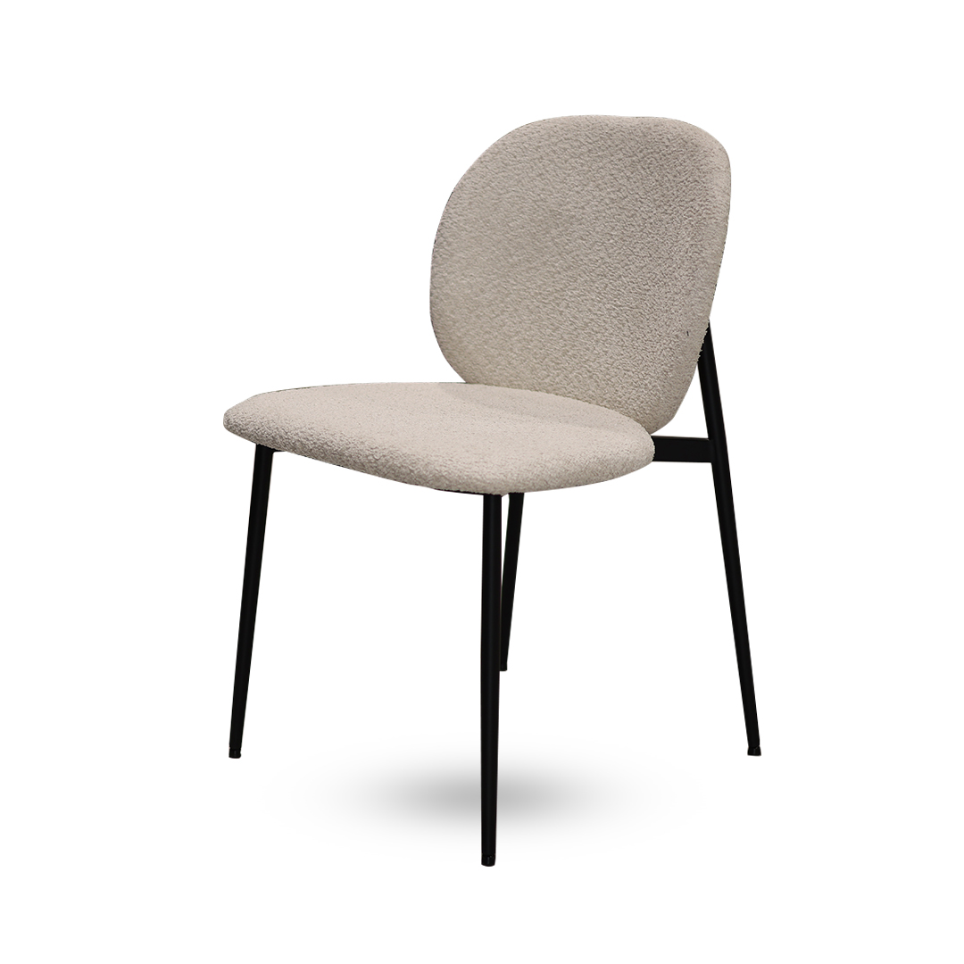 כיסא בעיצוב מודרני עם מושב ומשענת מרופדים לנוחות ישיבה מושלמת. רגלי מתכת דקות מעניקות מראה אלגנטי. מתאים לפינת אוכל, משרד או חלל אירוח בעיצוב עכשווי וחמים