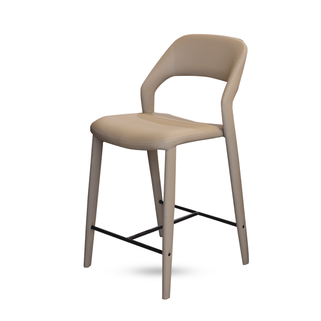 כיסא בר מעוצב בקווים מודרניים ונקיים, עשוי דמוי עור, בעל מושב מרופד לנוחות מרבית ומשענת תומכת לגב. מתאים לחללים מעוצבים כמו אי מטבח, בר ביתי או פינת אירוח יוקרתית.