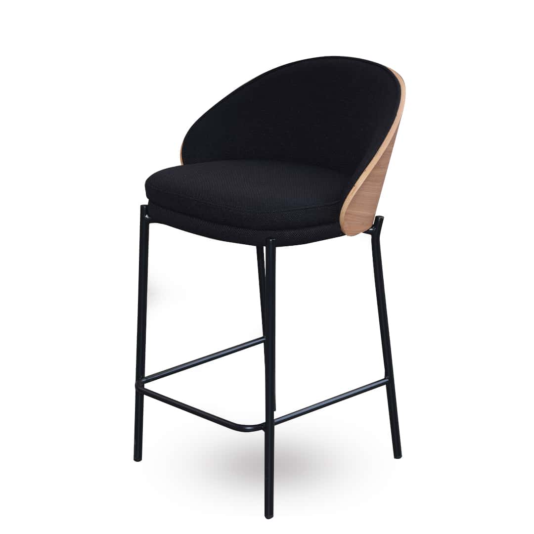 כיסא בר מעוצב בקווים אלגנטיים עם שילוב של ריפוד רך ונוח ומשענת מעוגלת בגימור עץ טבעי. בסיס מתכת שחור מעניק יציבות ומראה מודרני. מתאים לחללי בר, אי מטבח או פינות ישיבה יוקרתיות.