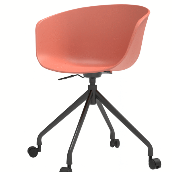 כיסא משרדי מסתובב, עם מושב פלסטיק מעוצב ובסיס מתכת שחור על גלגלים. נוח, פרקטי ובעל מראה מודרני המתאים לחדרי עבודה וחללים מעוצבים.