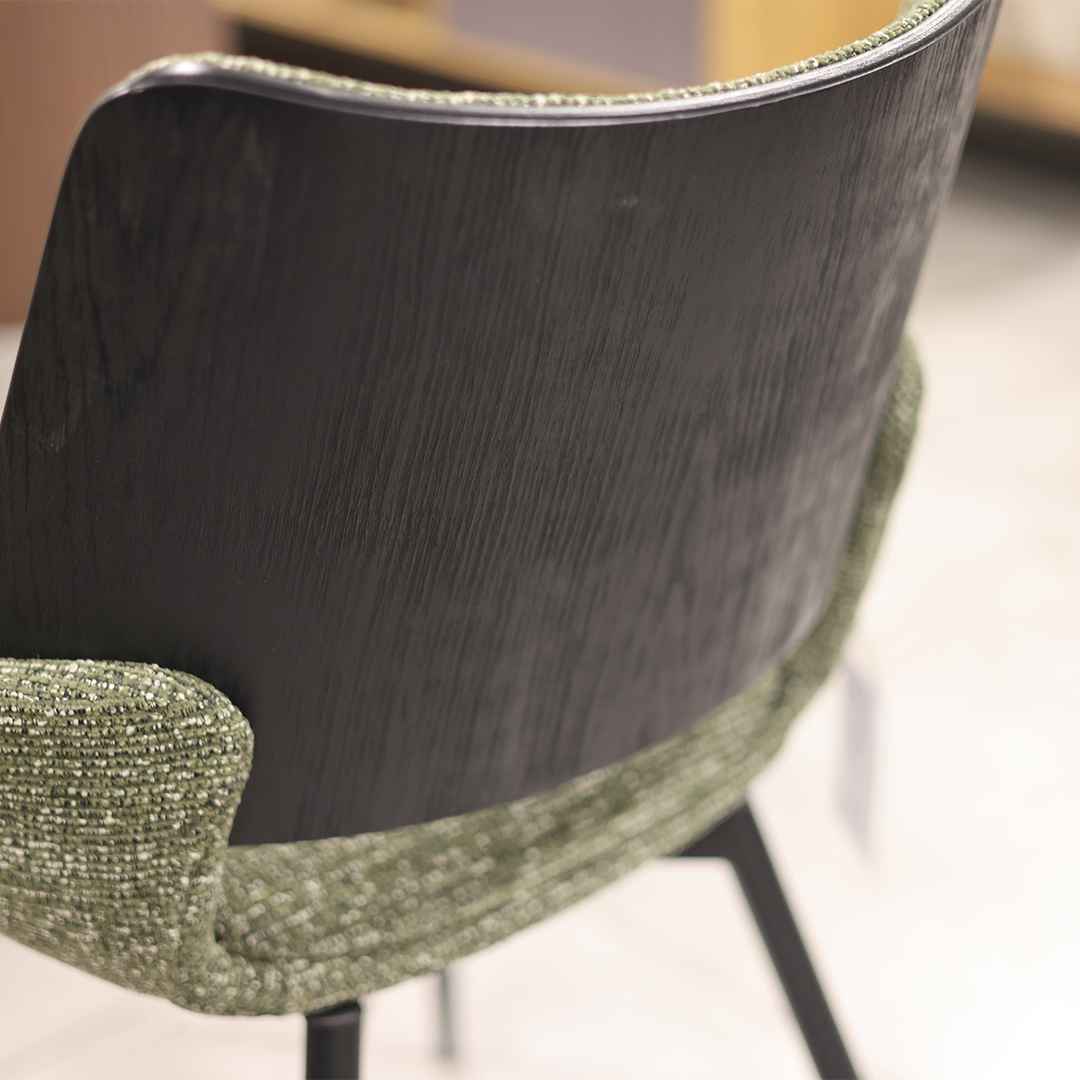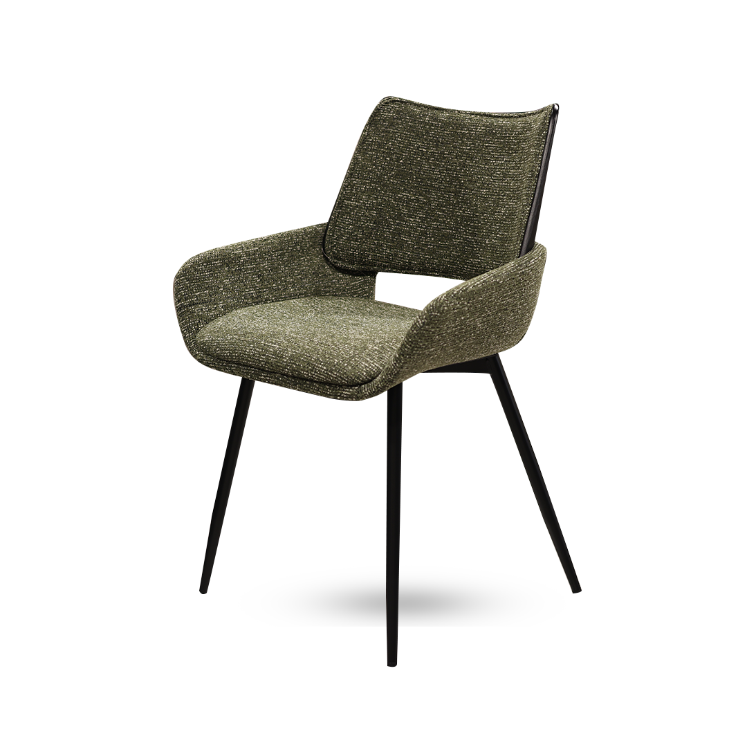כיסא אוכל מרופד בעל עיצוב מודרני ונקי עם קווים רכים ותפרים עדינים לנוחות מקסימלי. רהיט שמתאים לחדר אוכל, פינת ישיבה או אפילו משרד ביתי.