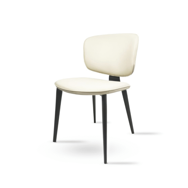 כיסא אוכל בעיצוב מודרני ונקי, עם מושב ומשענת מרופדים בדמוי וער ונעים למגע. מתאים לפינת אוכל מעוצבת, חלל אירוח או משרדי
