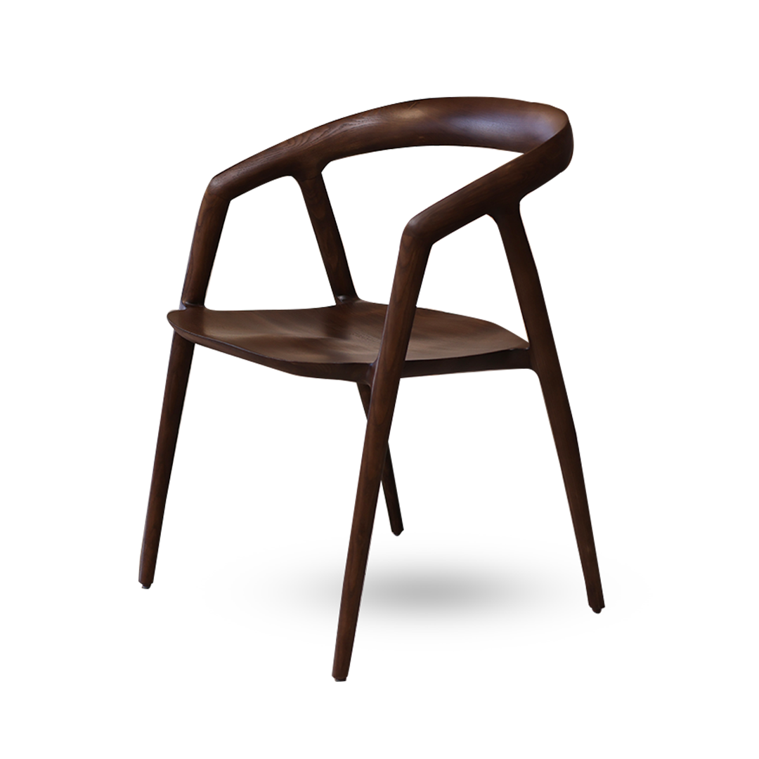 כיסא ייחודי בעיצוב מודרני-סקנדינבי עם קווים נקיים ואלגנטיים. גוון אגוז כהה, משענת וידיות המשולבות בקו אחד רציף ליצירת מראה מרשים ונוח לישיבה.