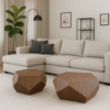 שולחן קפה גיאומטרי מעץ אגוז – זוג שולחנות עכשוויים בעיצוב ייחודי . השולחנות משלבים מראה מודרני עם חמימות טבעית של עץ אגוז, ומתאימים לחללים סלוניים המעוצבים בקו נקי ויוקרתי. השולחנות מתאימים להצבה יחד או בנפרד, ומעניקים לחלל מראה אלגנטי ומרשים.